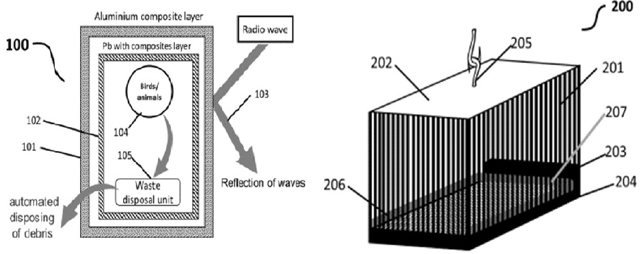 This invention comprises of birds cage designs that observes/reflects all the radio waves right at the cage walls to protect the wellbeing of the birds inside of cage comprising of an automated and birds biological disposals cleaning system into the cage itself which operates for itself whenever required. The bird cage comprises of multilayered, transparent, multi-material walls that does not allow any kind of radio waves to enter into the cage/sanctuary. This invention also provides a best adoption in for bird sanctuaries/ pet houses and birds has the ability to not cleaning and reflect/observe the radio waves to protect the cage lives, thus providing a better solution for birds through proactive, protective shielded cages by multiple absorption and reflective materials.