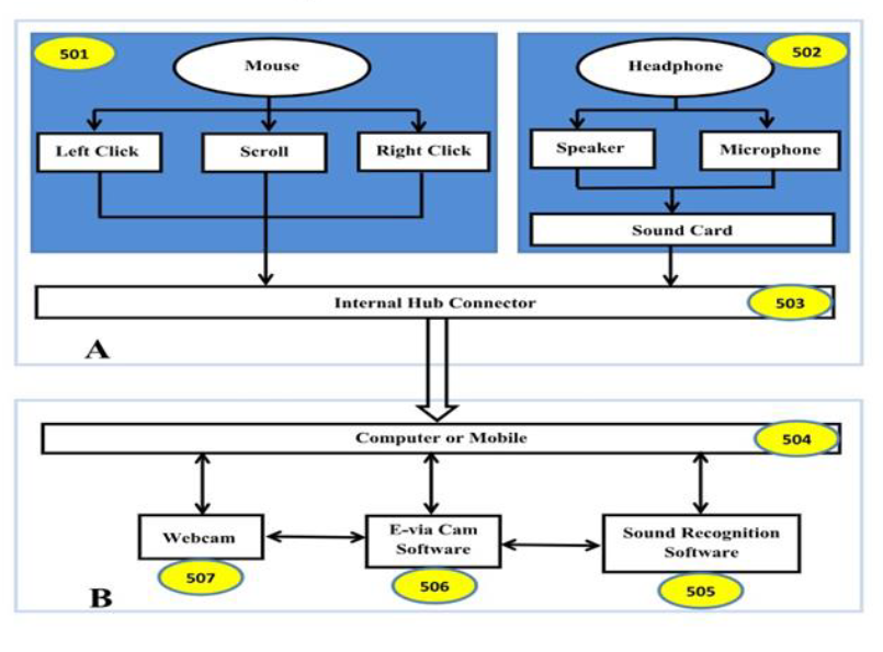 A system and method comprising hardware and software components for the differently challenged humans to communicate with computers. Hardware components include Optical mouse, Speaker, Microphone, Sound card, USB Hub connector. Software components (open source) are used to recognize facial expressions and voice signals. An Optical Mouse has three push buttons i.e. Lbutton, R-Button and M-button. In this device the arrangement has been made such that L and R buttons are attached to the left and right parts of the mouse and / or the hub connector. For instance, to open/close a word file on a computer screen, it can be done by the movement of the left cheek which is attached to the L-button. The Image processing software will assist detection of head movements of the user to corresponding actions performed on computer screen. An added feature is available i.e. voice recognition software which detects the voice commands of the person to perform the specific actions on screen.